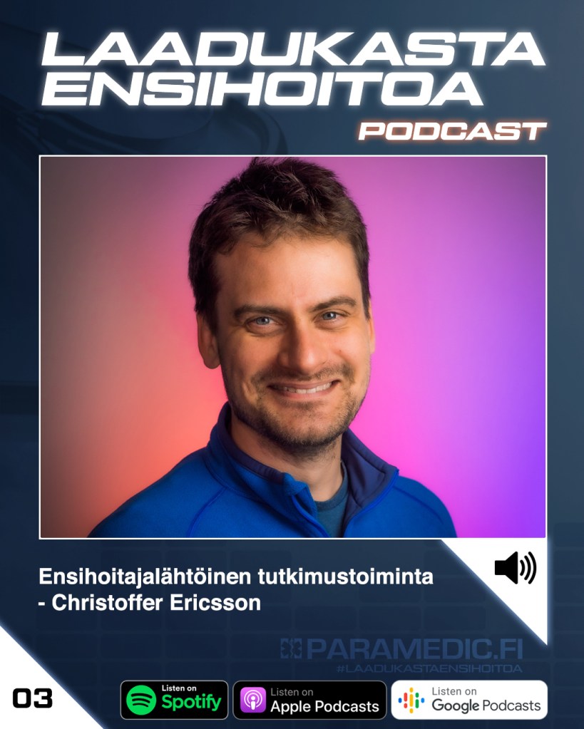 Aiheesta on keskustelemassa Christoffer Ericsson (@chride83), joka on itsekin alun perin ensihoitaja, sittemmin ensihoitaja YAMK, Master of Science in Applied Psychology, ja tätä nykyä väitöskirjatutkija Helsingin yliopistossa sekä toistuvasti palkittu ensihoidon lehtori Arcadassa. Hän on julkaissut useita vertaisarvioituja artikkeleita alan lehdissä ja on ollut lisäksi mukana monissa kansainvälisissä projekteissa, kuten Kids Save Lives ja European Paramedic Curriculum.