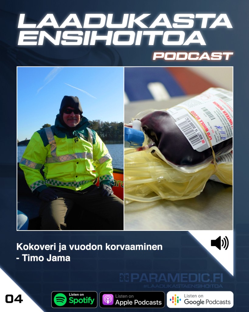 Jakson vieraana on ensihoitolääkäri Timo Jama. Hän aloitti ensihoitouransa jo 90-luvulla kesäsairaankuljettajana ja on sittemmin kouluttautunut anestesiologian ja tehohoidon sekä myös akuuttilääketieteen erikoislääkäriksi. Hän on työskennellyt ensihoitolääkärinä yli kaksikymmentä vuotta niin helikopterissa kuin maayksiköissä ja tekee parhaillaan kokoverivalmisteisiin liittyvää väitöskirjaa. Lisäksi hän toimii Päijät-Hämeen hyvinvointialueen ensihoidon vastuulääkärinä.