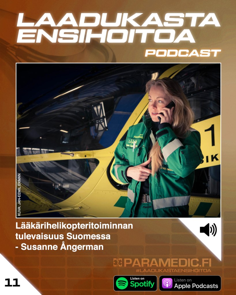 Jakson vieraana on jo toista kertaa Laadukasta ensihoitoa -podcastin historiassa anestesiologian ja tehohoidon erikoislääkäri ja ensihoitolääkäri Susanne Ångerman. Susanne on työskennellyt päätoimisesti Vantaan FinnHEMS -lääkärihelikopterissa toiminnan alusta asti, toimii Vantaan tukikohdassa apulaisylilääkärinä ja on aktiivisesti mukana HEMS-toiminnan kehitystyössä myös valtakunnallisesti.